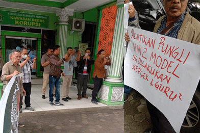 Sehingga Presidium LSM mendatangi Kantor Kementrian Agama (Kemenag) di Jl. A. Yani Plaju Palembang. Surat pemberitahuan aksi yang di kirim Kepada Kapolrestabes c/q. Kasat intelkam bernomor .142/Srt- press/IX/2022.