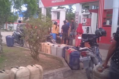 Mendistribusikan ke pengantri dengan menggunakan jerigen berbaris di SPBU tersebut dan membuat kemacetan di jalan wilayah SPBU tersebut.