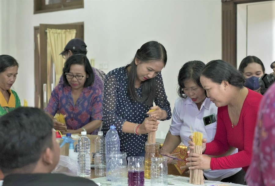 “Kita berharap dari adanya pelatihan ini akan ada suatu kontribusi atau manfaat dari peserta pelatihan. Apakah itu nantinya untuk meningkatkan penghasilan atau memenuhi kebutuhan. Karena untuk pencelupan dupa itu dibutuhkan oleh masyarakat Hindu setiap hari,” ungkapnya.