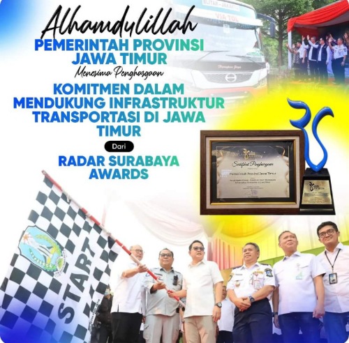 “Alhamdulillah Pemerintah Provinsi Jawa Timur memperoleh penghargaan Radar Surabaya Awards 2024 atas komitmennya mendukung infrastruktur transportasi di Jawa Timur,” dikutip dari Dishub Provinsi Jatim.