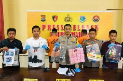 Polisi mengamankan dua orang tersangka, yaitu inisial LN dan RS. Sementara pelaku lainnya, HS, masih dalam pengejaran polisi.