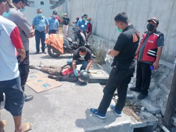 Korban ditemukan tak bernyawa di Jalan Tambak Osowilangun depan gudang logistic. Di lokasi ditemukan sepeda motor matic nopol W 3478 AW.