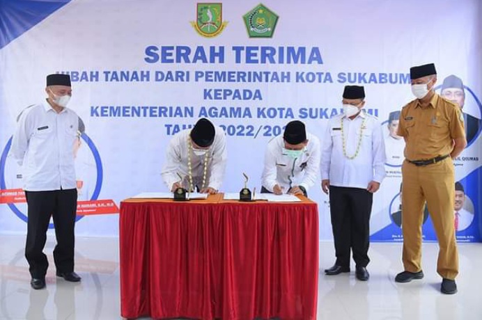 ”Kami ucapkan terimakasih kepada Wali Kota Sukabumi Achmad Fahmi yang di masa kepemimpinan beliau proses hibah bisa selesai,” ujar Kepala Kanwil Kemenag Jabar Ajam Mustajam.
