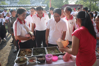 Acara diawali dengan apel krida, dilanjutkan senam bersama dan berkunjung ke produk UMKM. Dapat dilihat para pegawai sangat antusias membeli produk UMKM yang sebagian besar menawarkan produk kuliner dan bahan kebutuhan pokok.