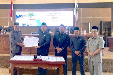 Setelah mendapatkan persetujuan dari DPRD Kabupaten Balangan, agenda dilanjutkan dengan penandatanganan persetujuan bersama terhadap lima buah Raperda oleh Sekretaris Daerah Kabupaten Balangan, Ketua DPRD Kabupaten Balangan, Wakil I dan Wakil II DPRD Kabupaten Balangan.