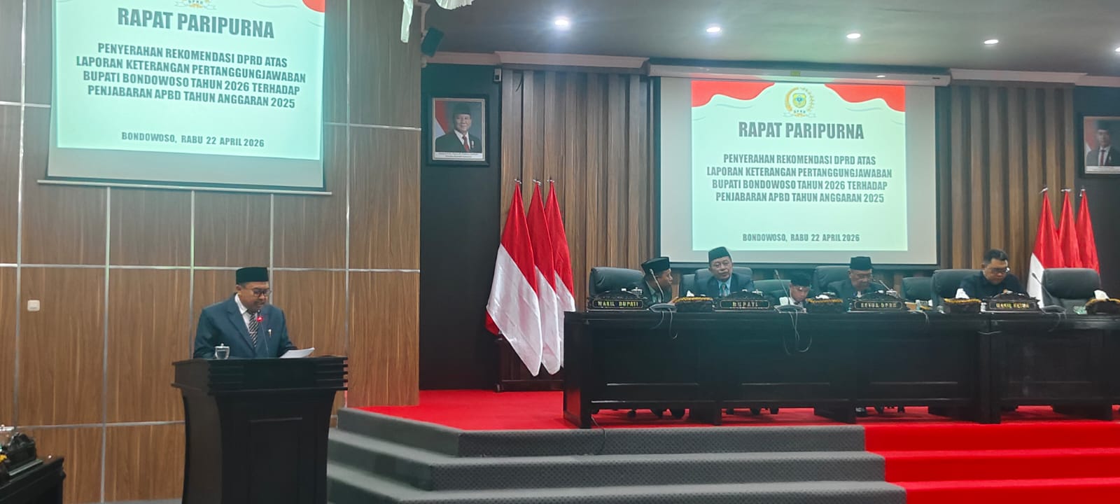 FAKTA – Dewan Perwakilan Rakyat Daerah (DPRD) Kabupaten Bondowoso menggelar Rapat Paripurna pembahasan Laporan Keterangan Pertanggungjawaban (LKPJ) Bupati Tahun 2026, Rabu (22/4/2026). Rapat yang dibuka langsung oleh Ketua DPRD, Ahmad Dhafir, ini menghasilkan sejumlah rekomendasi kritis terhadap kinerja Organisasi Perangkat Daerah (OPD).