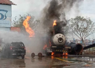 Dua Orang Terluka Akibat Truk Tangki LPG Terbakar di PT. Dok dan Perkapalan Surabaya