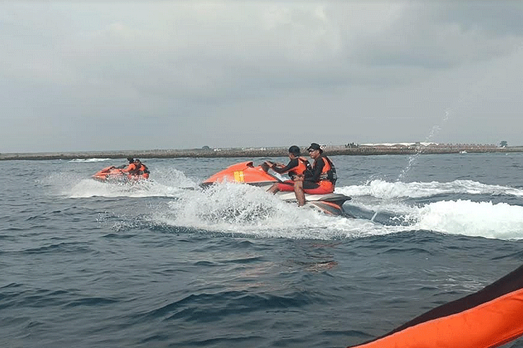 SRU laut bergerak dari Pantai Kelan menggunakan 2 unit jetski dan 1 unit rubber boat. Selain Alut laut, upaya pencarian dibantu dengan drone thermal dan alat deteksi bawah permukaan air (Aqua Eye).