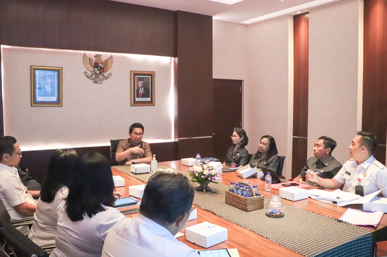 Sekda Wayan Adi Arnawa memimpin rapat koordinasi dalam rangka memberikan seragam kepada Lansia, di Ruang Rapat Sekda Badung, Rabu (11/10).
