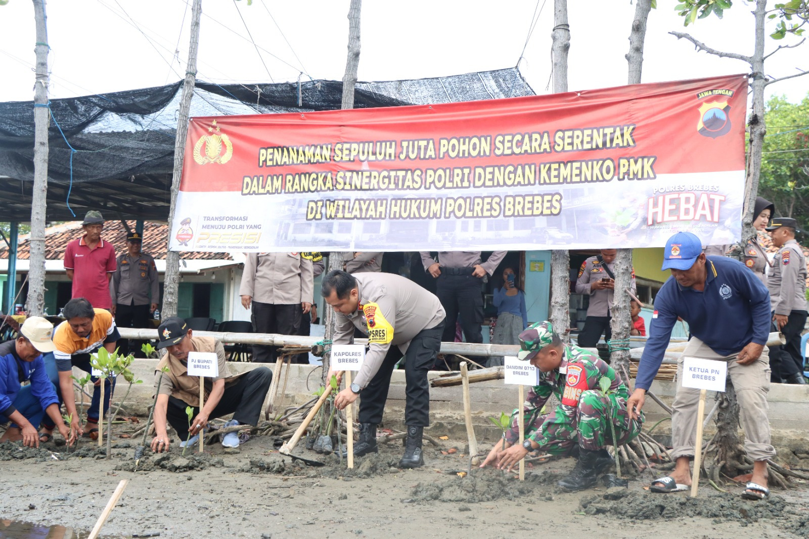 “Kegiatan penanaman 10 juta pohon bersama Polri ini dilaksanakan secara serentak di Polda dan Polres jajaran, termasuk Polres Brebes,” kata Kapolres AKBP Guntur M Tariq.