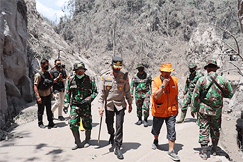 Bupati Malang H.M. Sanusi, Kapolres Malang AKBP Bagoes Wibisono dan Dandim 0818 Malang-Batu Letkol Yusub Dodi Sandra beserta rombongan, meninjau sisa – sisa kekokohan jembatan yang selama ini menjadi penghubung Kabupaten Malang dengan Kabupaten Lumajang.