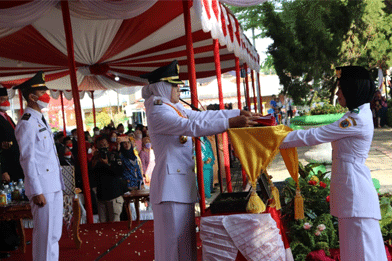 Bertindak sebagai Inspektur upacara, Bupati Brebes Idza Priyanti SE MH dan membacakan sambutan tertulis Gubernur Jawa Tengah Ganjar Pranowo.