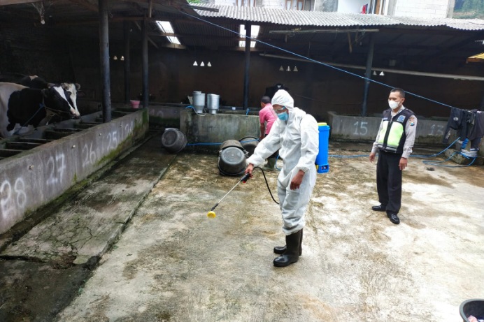 Kedatangan polisi dari Polsek Pujon ke kandang sapi perah milik Haji Umbara tersebut dalam rangka giat patroli dialogis dan penyemprotan disinfektan di kandang ternak milik warga masyarakat peternak sapi, di wilayah hukum Polsek Pujon, Polres Batu.