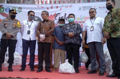 Pengamanan turut diberikan dalam gelaran pangan murah di Mall Pelayanan Publik yang dipadati masyarakat guna menukarkan kupon yang diperoleh untuk membeli sembako dengan harga terjangkau.