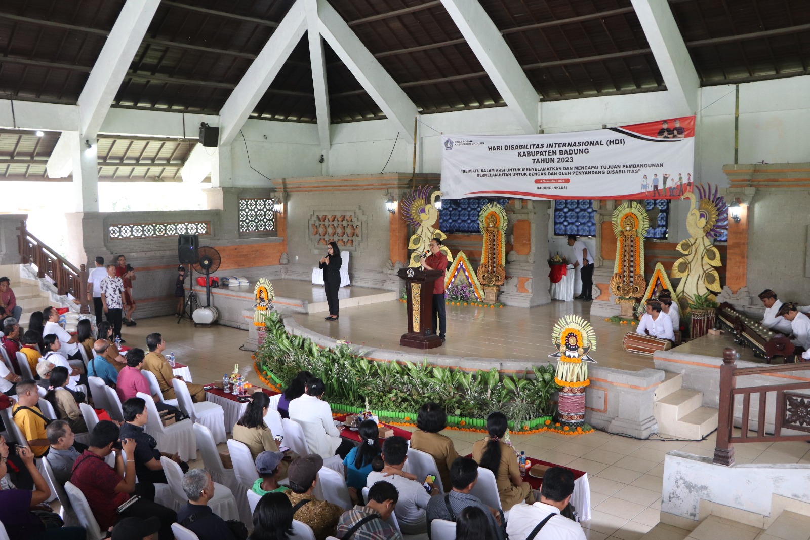 Sementara Kadis Sosial Ketut Sudarsana melaporkan peringatan Hari Disabilitas Internasional di Kabupaten Badung Tahun 2023 mengambil tema “Bersatu Dalam Aksi Untuk Menyelamatkan dan Mencapai Tujuan Pembangunan Berkelanjutan Untuk Dengan dan Oleh Penyandang Disabilitas” yang diikuti oleh perwakilan disabilitas yang ada di Kabupaten Badung. Adapun pelaksanaan HDI ini didasari oleh Resolusi Dewan Perserikatan Bangsa-Bangsa (PBB), yang salah satunya Resolusi PBB Nomor 47 tahun 1992 tentang penetapan HDI dan di Badung berdasarkan Perda Nomor 9 tahun 2019 tentang Perlindungan dan Pemenuhan hak-Hak Penyandang Disabilitas. HDI dilaksanakan bertujuan meningkatkan pemahaman kepedulian dan keberpihakan dari seluruh komponen masyarakat terhadap penyandang disabilitas serta terwujudnya partisipasi semua pihak baik itu swasta terlebih negara yang memberikan kesempatan pada penyandang disabilitas untuk memberikan kesempatan akses pemberdayaan. Dalam rangka pelaksanaan HDI, Dinas Sosial telah melaksanakan kegiatan pembinaan deteksi dini dan rehabilitasi kepada penyandang disabilitas di Kabupaten Badung.