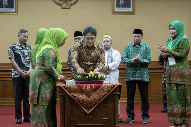 Bupati Nyoman Giri Prasta menghadiri acara Halal Bihalal dan Puncak Harlah Muslimat NU Kabupaten Badung Ke-77 di Ruang Kertha Gosana, Puspem Badung.