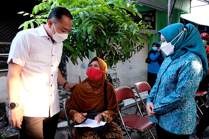 Majalahfakta.id – Wali Kota Surabaya Eri Cahyadi didampingi oleh Ketua Tim Penggerak (TP) PKK Kota Surabaya Rini Indriyani membuka rangkaian kegiatan Bakti Sosial Penyaluran Pelayanan Terintegrasi dalam menyambut Hari Jadi Kota Surabaya (HJKS) ke-729. Kegiatan ini berlokasi di Jalan Kupang Gunung Timur I, Kelurahan Putat Jaya, Kecamatan Sawahan Kota Surabaya, Selasa (17/5/2022).