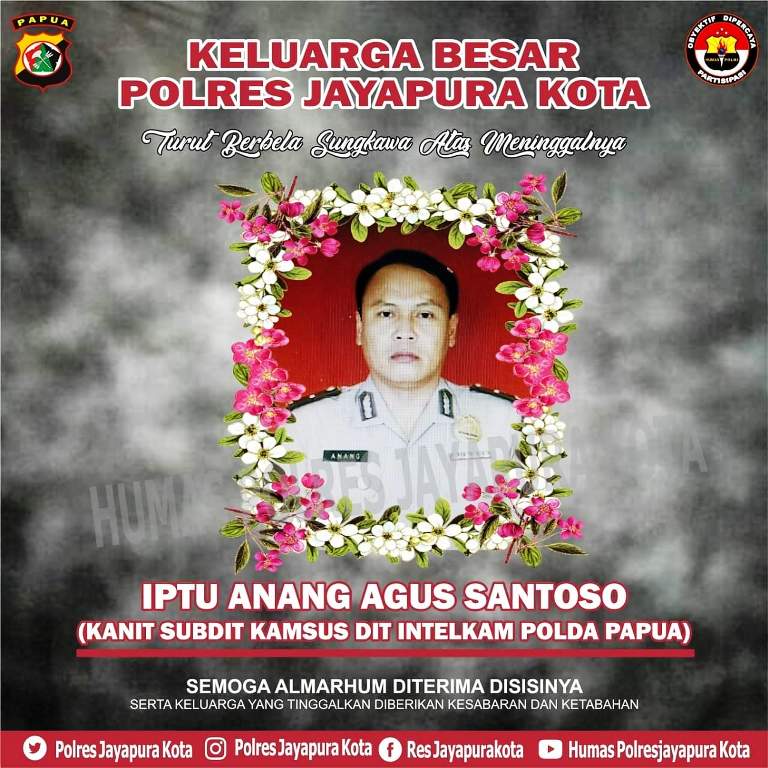 Mustofa Kamal menambahkan anggota tersebut bernama Iptu Anang Agus Santoso, berusia 47 tahun, yang saat kejadian sebagai Kanit Subdit Kamsus Dit Intelkam Polda Papua. Lanjut Kamal, saat itu Iptu Anang sedang menjalankan tugasnya di KPU Provinsi Papua dan ketika perjalanan pulang menggunakan mobil Avanza. Dalam perjalanan mobilnya ditimpa bencana pohon yang tumbang. Dalam waktu yang tidak lama didatangi rekan-rekannya dan sekitar pukul 07.00 Wit dapat dievakuasi ke RS Bhayangkara. Namun nyawanya sudah tidak tertolong lagi.