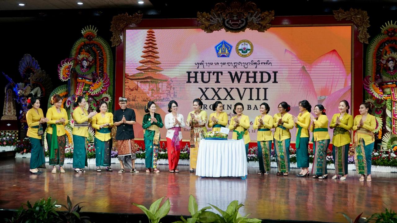 Acara tersebut turut dihadiri Pembina WHDI Provinsi Bali yang juga Ketua TP PKK Provinsi Bali Putri Koster, Penasehat WHDI Provinsi Bali Seniasih Giri Prasta, para Ketua WHDI Kabupaten/Kota se-Bali, serta sejumlah undangan lainnya. (hms)
