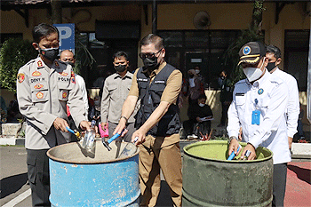 Barang bukti miras tersebut dimusnahkan secara simbolis oleh Wakapolresta Malang kota, Kepala Dinkes Kota Malang dan Kasubbag Umum BNN Kota Malang, diikuti seluruh personil Polresta Malang Kota dengan memasukkan botol-botol miras tersebut ke dalam Truk compactor milik Dinas Lingkungan Hidup Kota Malang.