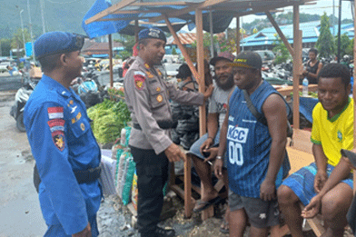 FAKTA – Sat Polair Polresta Jayapura Kota gelar giat Para-Para Numbay bersama warga pesisir Hamadi bertempat di Pesisir Pasar Hamadi Perikanan, Kamis (15/6/2023) Siang.