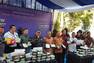 FAKTA – Jelang peringatan Hari Anti Narkotika Internasional (HANI) yang jatuh pada 26 Juni mendatang, Badan Narkotika Nasional Republik Indonesia (BNN RI) melakukan pemusnahan barang bukti narkotika di Lapangan Tembak Tohpati Polda Bali, pada Jumat (23/6/2023).