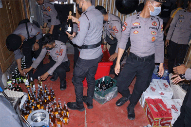 Dalam operasi miras tersebut berhasil mengamankan minuman keras jenis Tuak, berem dan Bir serta beberapa orang yang diduga sebagai pemandu lagu.