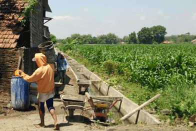 Pembangunan irigasi secara swadaya petani Desa Jarak Kulon, Jombang.