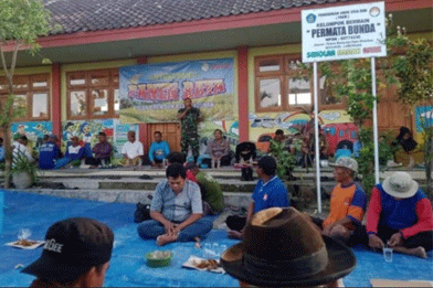 Danramil 0812/16 Sekaran, Kapten Inf. Sobar Atnanto bersama Pemdes dan petani Desa Brumbun Kecamatan Maduran Kabupaten Lamongan Provinsi Jawa Timur menggelar syukuran panen raya 2023. di halaman SD setempat.