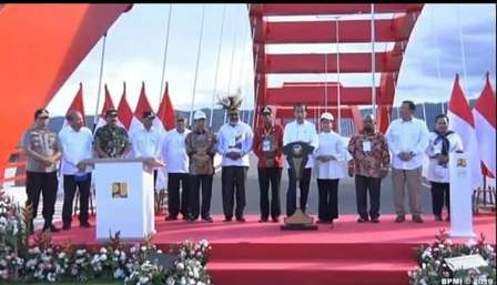 Dalam peresmian jembatan tersebut Presiden Joko Widodo didampingi Gubernur Papua, Lukas Enembe, Walikota Jayapura, Benhur Tomi Mano, dan para pejabat pusat antara lain Menteri Pekerjaan Umum dan Perumahan Rakyat (PUPR) Basuki Hadimulyono, Wakil Menteri PUPR John Wempi Wetipo, Mendagri Tito Karnavian, Menteri Perhubungan Budi Karya Sumadi dan pejabat lainnya di lingkungan TNI dan Polri. (F.1027)