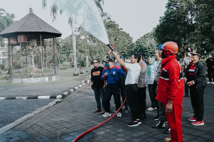 Turut hadir Kadis Pertanian dan Pangan Kabupaten Badung, I Wayan Wijana, Kalaksa BPBD Wayan Darma, Ketua Eco Enzyme Nusantara Bali Rawi Adnyani dan Perwakilan Forkopimda Badung. Penyemprotan dilakukan menggunakan mobil pemadam kebakaran bekerja sama dengan Eco-Enzyme Nusantara.