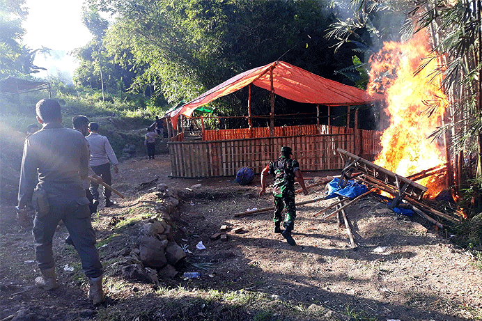 Karena meresahkan masyarakat akhirnya tempat lokasi sabung ayam tersebut dibakar guna memberikan efek jera bagi pelaku.