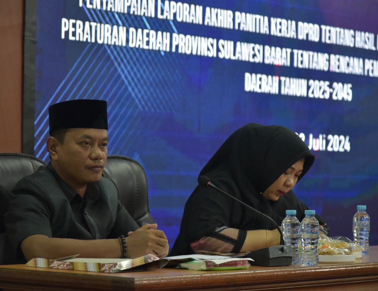 FAKTA – Sidang Paripurna Dewan Perwakilan Rakyat Daerah (DPRD) Provinsi Sulawesi Barat yang berlangsung hari Senin malam, 22 Juli 2024, Stephanus Buntu Madika, Kabag Umum Sekretariat DPRD, mewakili Sekretaris Dewan, membacakan Persetujuan Bersama Rancangan Peraturan Daerah (Ranperda) tentang Rencana Pembangunan Jangka Panjang Daerah (RPJPD) Tahun 2025-2045.