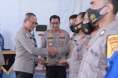 FAKTA – Kepala Badan Pemeliharaan Keamanan (Kabaharkam) Polri, Komjen Pol DR. Drs. Arief Sulistyanto, M.Si memberikan penghargaan kepada salah satu Bhabinkamtibmas berprestasi Polres Lombok Tengah.
