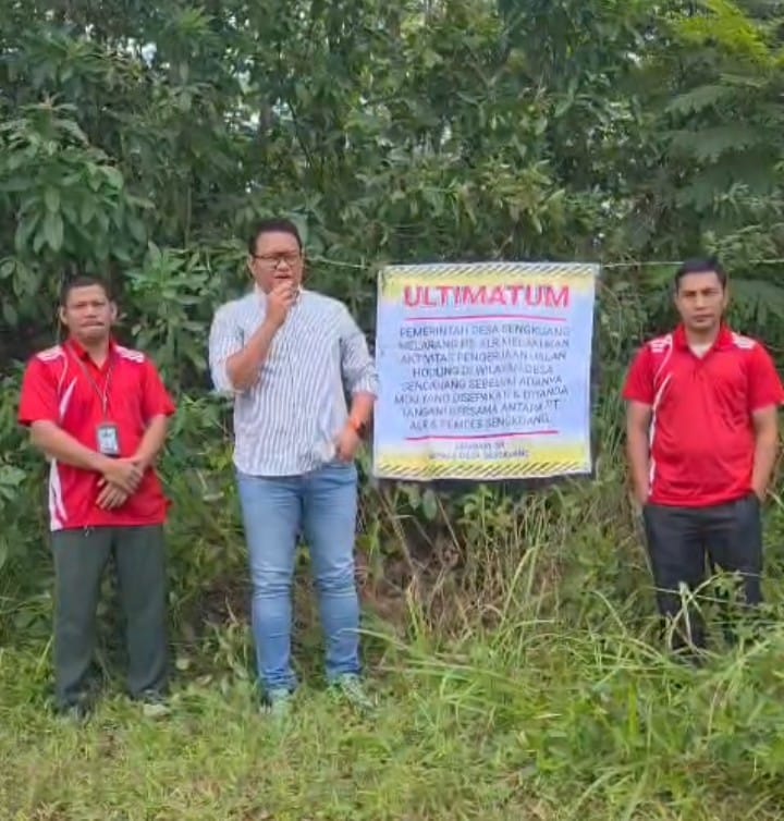 Saya Jamhari kepala Desa Sengkuang bersama perangkat desa hari ini kami memasang ultimatum kepada PT Antar Lintas Raya atas nama pemerintah desa melarang melakukan aktivitas pekerjaan jalan Houling Batubara yang sepanjang desa Sengkuang, sebelum adanya MOU yang disepakati kemudian yang kami ajukan melalui hasil musyawarah desa ,” ujarnya.