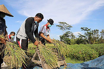 Majalahfakta.id – Kepala Dinas Pertanian (Kadistan) dan Pangan Kabupaten Badung I Wayan Wijana melakukan pemotongan rinai padi organik di Subak Ayunan Abiansemal, Jumat (15/10/2021).