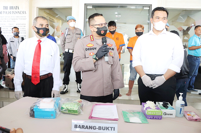 Kepala Kepolisian Resor Kota (Kapolrtesta) Banyuwangi Kombes Pol Deddy Foury Millewa. Para tersangka saat ini diamankan di Rutan Mapolresta Banyuwangi guna menjalani proses penyidikan lebih lanjut.