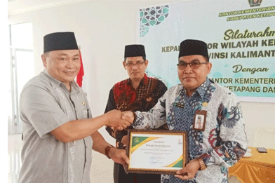 FAKTA – Dinilai berhasil dalam pengelolaan anggaran di satuan kerjanya (Satker) Kementerian Agama Kabupaten Mempawah, diberi penghargaan diserahkan Kepala Kantor Wilayah Kemenag Kalbar, Muhajirin Yanis.