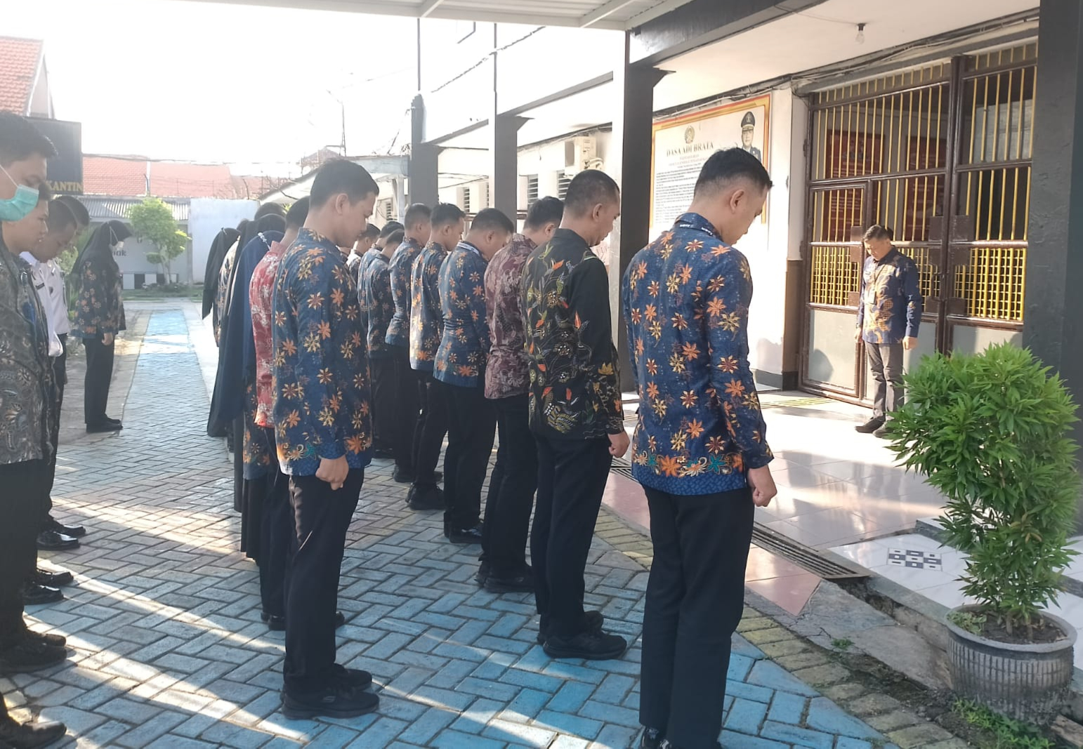 FAKTA – Kepala Lembaga Pemasyarakatan (Lapas) Kelas IIB Lamongan Kantor Wilayah (Kanwil) Kemenkumham Jatim, Mahrus Berikan pengarahan jelang verifikasi lapangan oleh Tim Penilai Internal (TPI) pada Saat Apel Pagi Pegawai, Jumat(10/5/2024).
