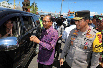 FAKTA – Kepala Kepolisian Daerah Bali Irjen Pol Putu Jayan Danu Putra dan Gubernur Bali I Wayan Koster melaksanakan pengecekan arus mudik di Pelabuhan Gilimanuk, Jembrana, Rabu (19/4/2023).