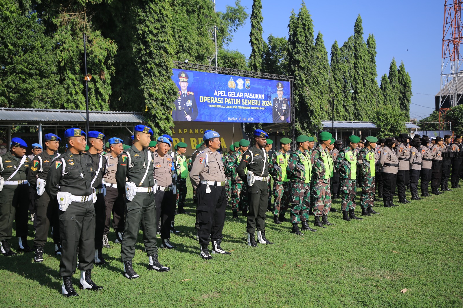 FAKTA – Kapolres Madiun, AKBP Muhammad Ridwan, memimpin apel gelar pasukan Operasi Patuh Semeru 2024 yang dilaksanakan di Lapangan Tri Brata Mapolres Madiun, Senin (15/7/2024). Acara tersebut diikuti oleh personel Polres Madiun dan berbagai instansi terkait, yang bersinergi untuk memastikan kelancaran dan ketertiban lalu lintas di wilayah Madiun.