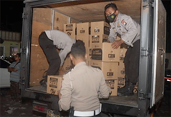 Dengan mengerahkan satu peleton dalmas Polres Malang, AKBP Bagoes memimpin langsung penyaluran bantuan tersebut.