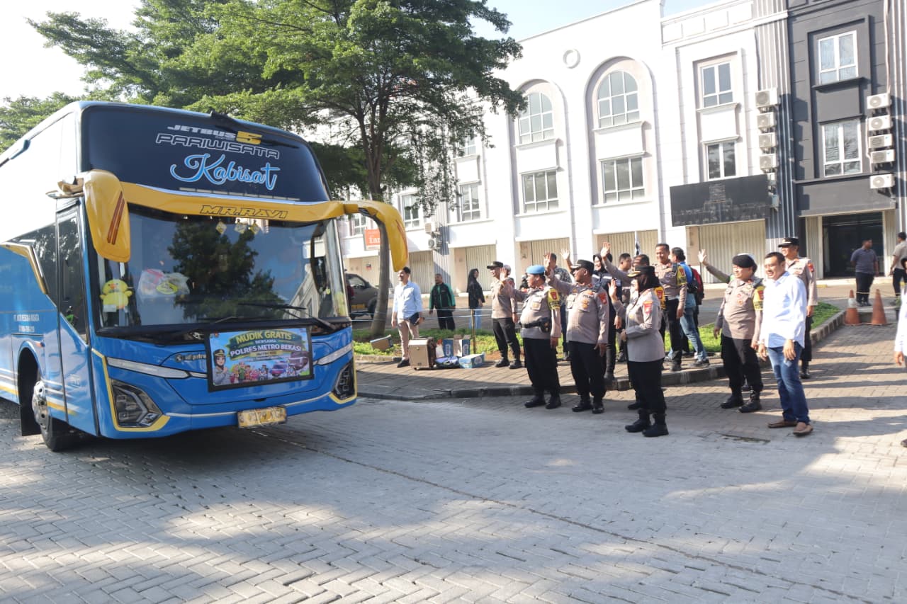 FAKTA – Pelepasan mudik gratis oleh Polres Metro Bekasi. Sebanyak tiga unit bus dengan kapasitas masing-masing 50 kursi disiapkan untuk memberangkatkan 150 pemudik menuju kampung halaman di wilayah Jawa Barat dan Jawa Tengah.