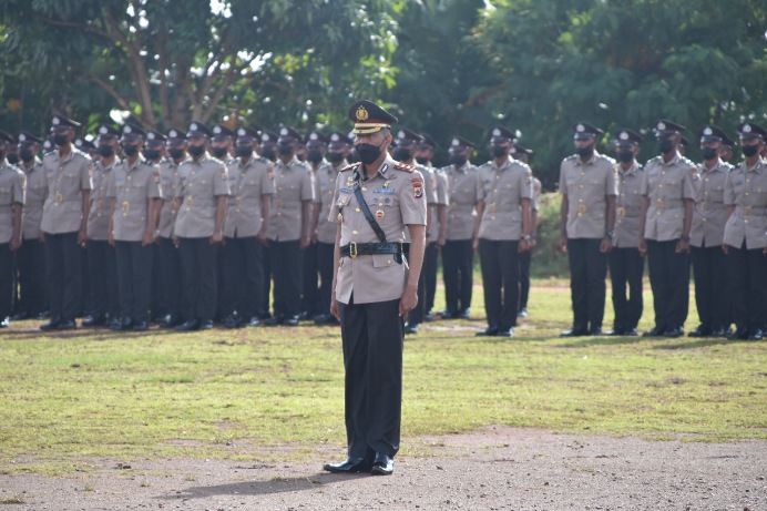 “Ada lima penekanan yang perlu saudara pedomani dan laksanakan sebagai bekal memasuki tugas di lapangan yaitu Tingkatkan selalu keimanan dan ketaqwaan kepada Tuhan Yang Maha Esa sebagai Pedoman dalam kehidupan dan pelaksanaan Tugas, Pegang teguh dan amalkan nilai-nilai Tribrata dan Catur Prasetya, dalam setiap langkah pengabdian sebagai Insan Bhayangkara,” ucapnya.