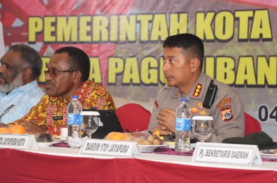 Kapolresta Jayapura Kota KBP Victor Mackbon ditempat yang sama juga membahas Kamtibmas di Kota Jayapura yang akhir-akhir ini berhadapan dengan aksi-aksi unjuk rasa oleh kelompok yang menolak adanya Daerah Otonomi Baru.