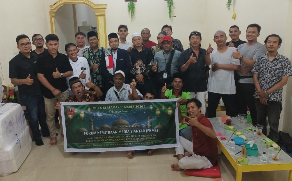 FAKTA – Momentum bulan suci Ramadhan dimanfaatkan untuk mempererat hubungan kemitraan antara kepolisian dan insan pers. Kasat Narkoba Polres Pematangsiantar AKP Irwanta Sembiring, S.H., M.H., menggelar kegiatan buka puasa bersama dengan para jurnalis yang tergabung dalam Forum Kemitraan Media Siantar (FKMS) di Rumah Makan Ayam Pecak AQ Bintang, Jalan Farel Pasaribu No. 47, Kelurahan Pardamean, Kecamatan Siantar Marihat, Minggu (15/3/2026).