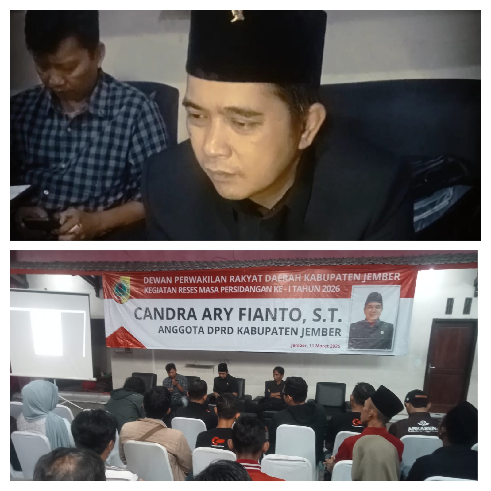 Hal tersebut dilakukan Anggota Dewan Perwakilan Rakyat Daerah (DPRD) Kabupaten Jember, Candra Ary Fianto, S.T., dari Fraksi PDI Perjuangan yang juga menjabat sebagai Ketua Komisi B, saat menggelar kegiatan Reses Masa Persidangan Ke-1 Tahun 2026 di Desa Kalisat, Kecamatan Kalisat, Kabupaten Jember, Provinsi Jawa Timur, Rabu (11/3/2026).