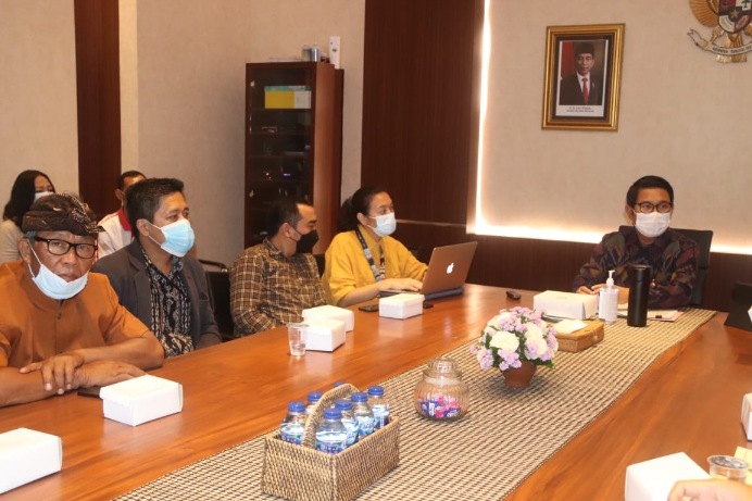 Sekda Adi Arnawa saat menerima Tim Baliwood Land dan Tim Digital Kemenparekraf RI di Puspem Badung, Jumat (20/5/2022).