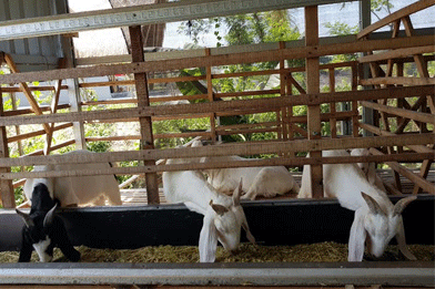 Kalau makanan dikasih daun-daunan, Untuk menambah hasil susunya dikasih jagung, kedelai sama ampas tahu untuk proteinya, serta mengunakan sistem makan silase,”makanan yang sudah dimasukan fermentasi guna menghindari perut kembung pada kambing”.