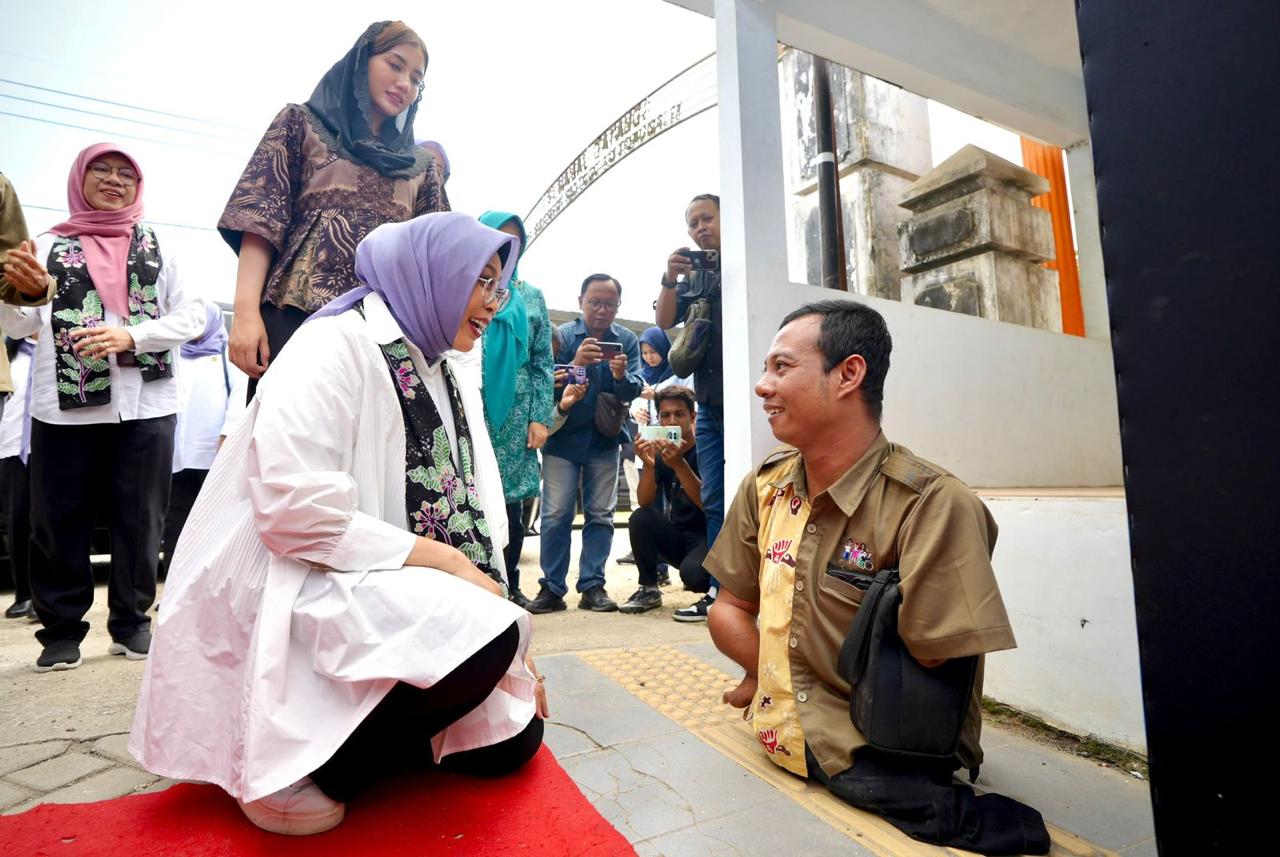 Ketua TP PKK Kabupaten Trenggalek, Novita Hardini, turut mengapresiasi semangat juang Slamet dan warga penyandang disabilitas lainnya.